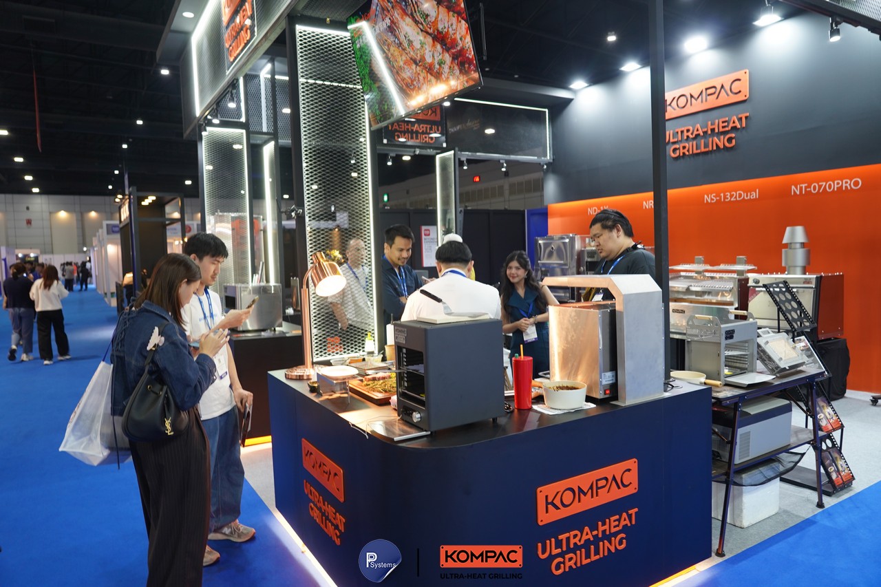KOMPAC มีความยินดีอย่างยิ่งที่ได้นำเสนอเทคโนโลยีล่าสุดด้านการย่างและการปรุงอาหารคุณภาพสูงในงาน THAIFEX – HOREC Asia 2025 งานแสดงสินค้าเฉพาะทางที่ยิ่งใหญ่ที่สุดของภูมิภาคเอเชีย สำหรับธุรกิจโรงแรม ร้านอาหาร และการจัดเลี้ยง (HORECA)