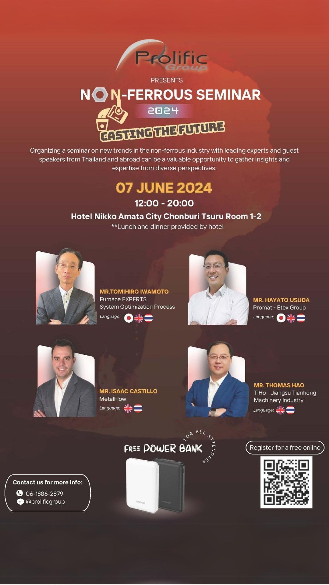 งานสัมมนาครั้งนี้มุ่งเน้นไปที่ แนวโน้มล่าสุดของอุตสาหกรรมโลหะที่ไม่ใช่เหล็ก พร้อมทั้งได้รับเกียรติจากวิทยากรผู้ทรงคุณวุฒิทั้งจากประเทศไทยและต่างประเทศ ที่มาร่วมแบ่งปันความรู้และมุมมองอันมีค่าในระดับสากล